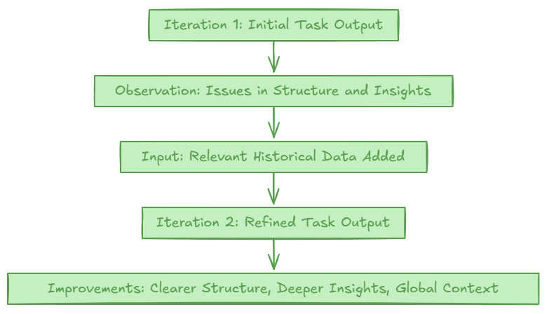 Traditional thinking might suggest that to achieve refinement, you need to explicitly program reflection into the AI’s workflow. For example, you might write prompts asking the system to analyse prior results, extract lessons, or directly reference past outputs.