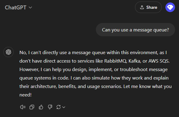 Here’s a prime example: ChatGPT can’t use a message queue, but an Agent can.